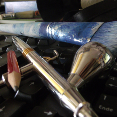 These include pencil drawing, aquarelle and airbrushing; recently however, acrylic painting and digital painting in the program GIMP are predominant.